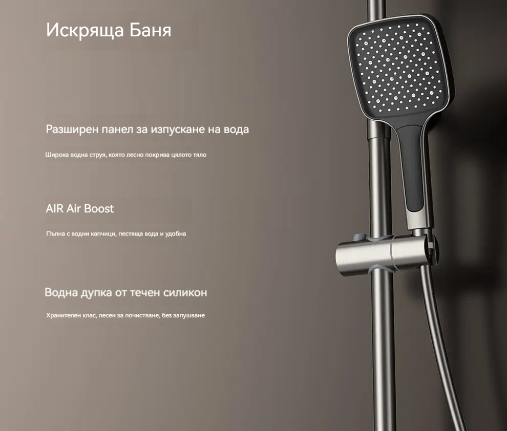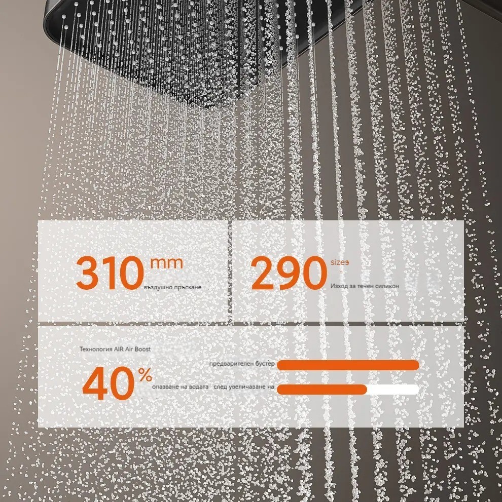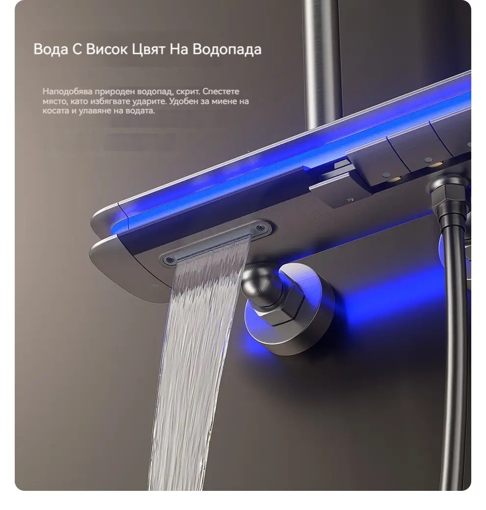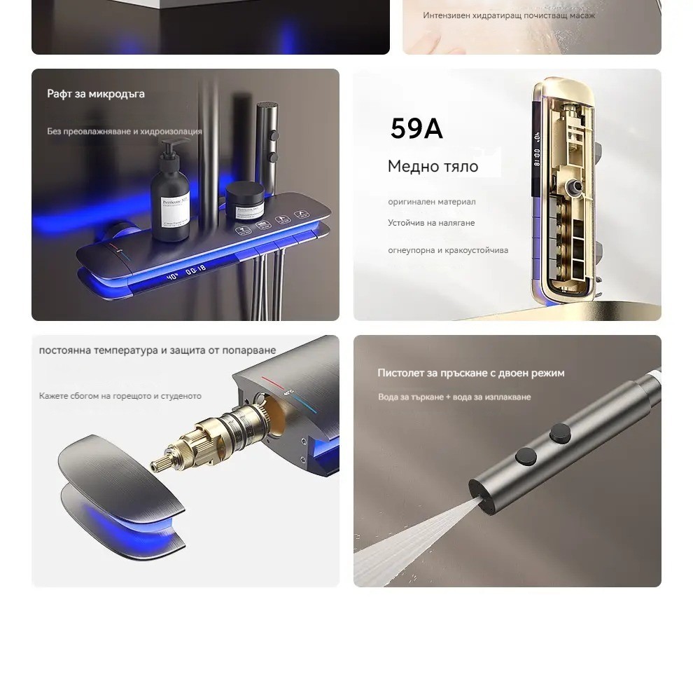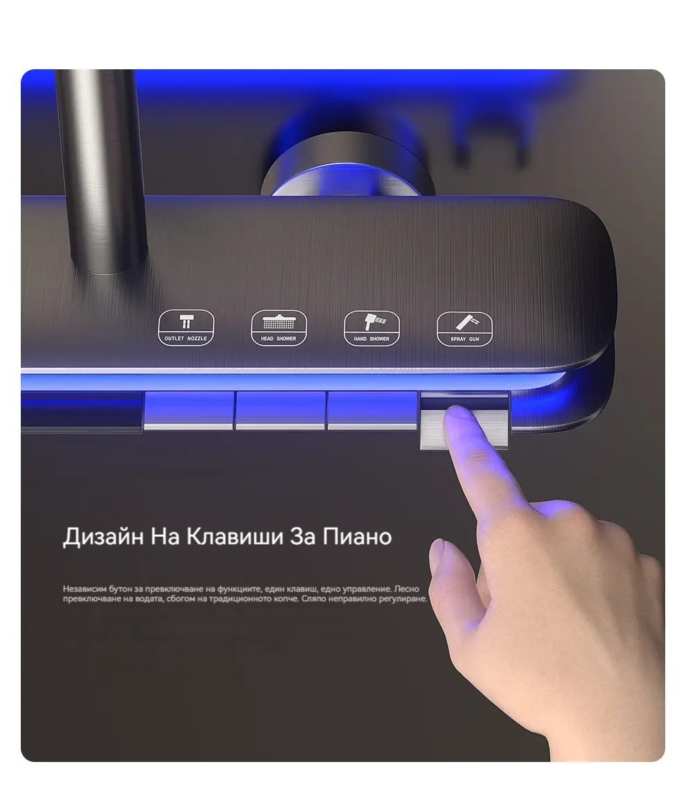 Комплект за душ, интелигентен термостат с цифров дисплей, хидравлично захранване, пиано бутони, месингов корпус, четирипозиционен контрол на налягането на водата!