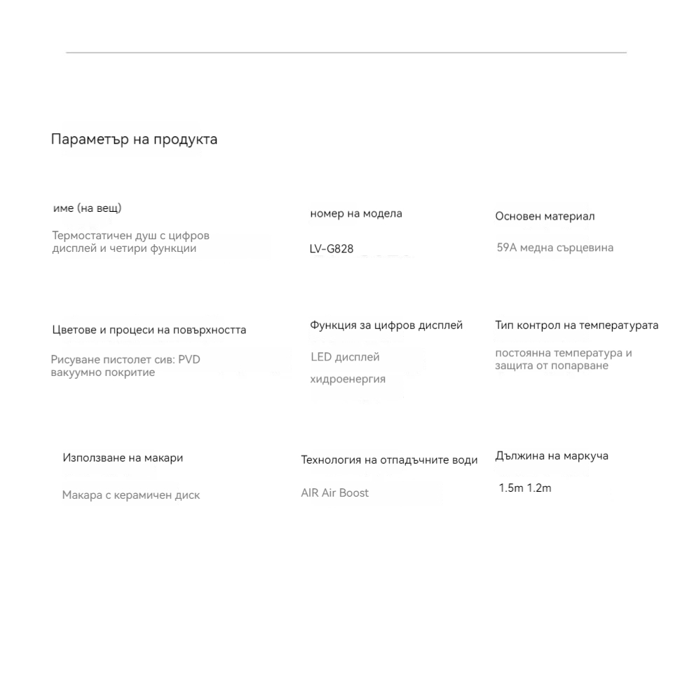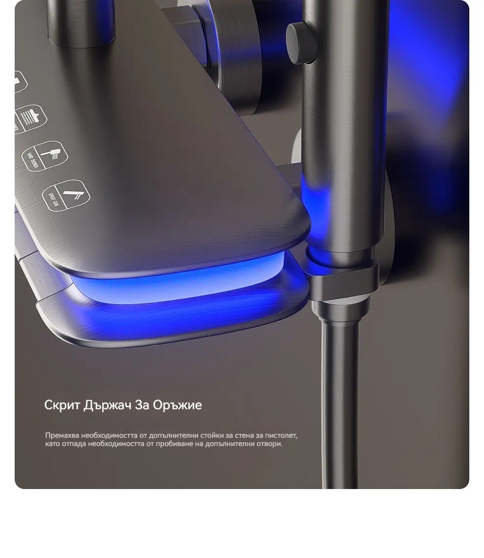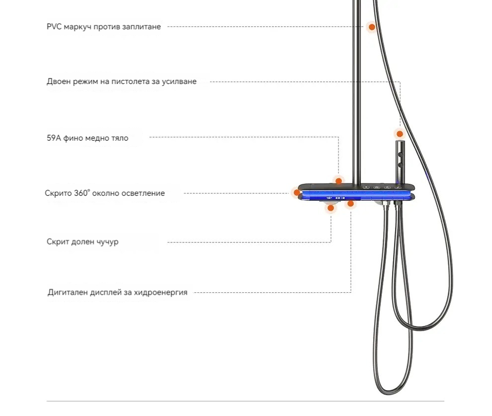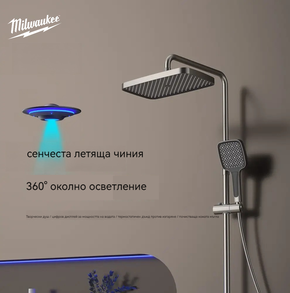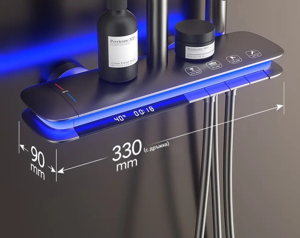 Комплект за душ, интелигентен термостат с цифров дисплей, хидравлично захранване, пиано бутони, месингов корпус, четирипозиционен контрол на налягането на водата!