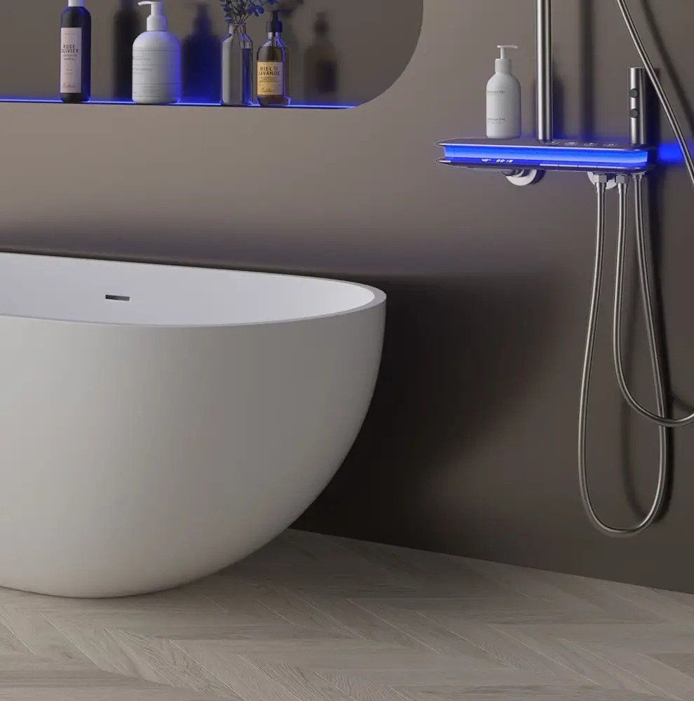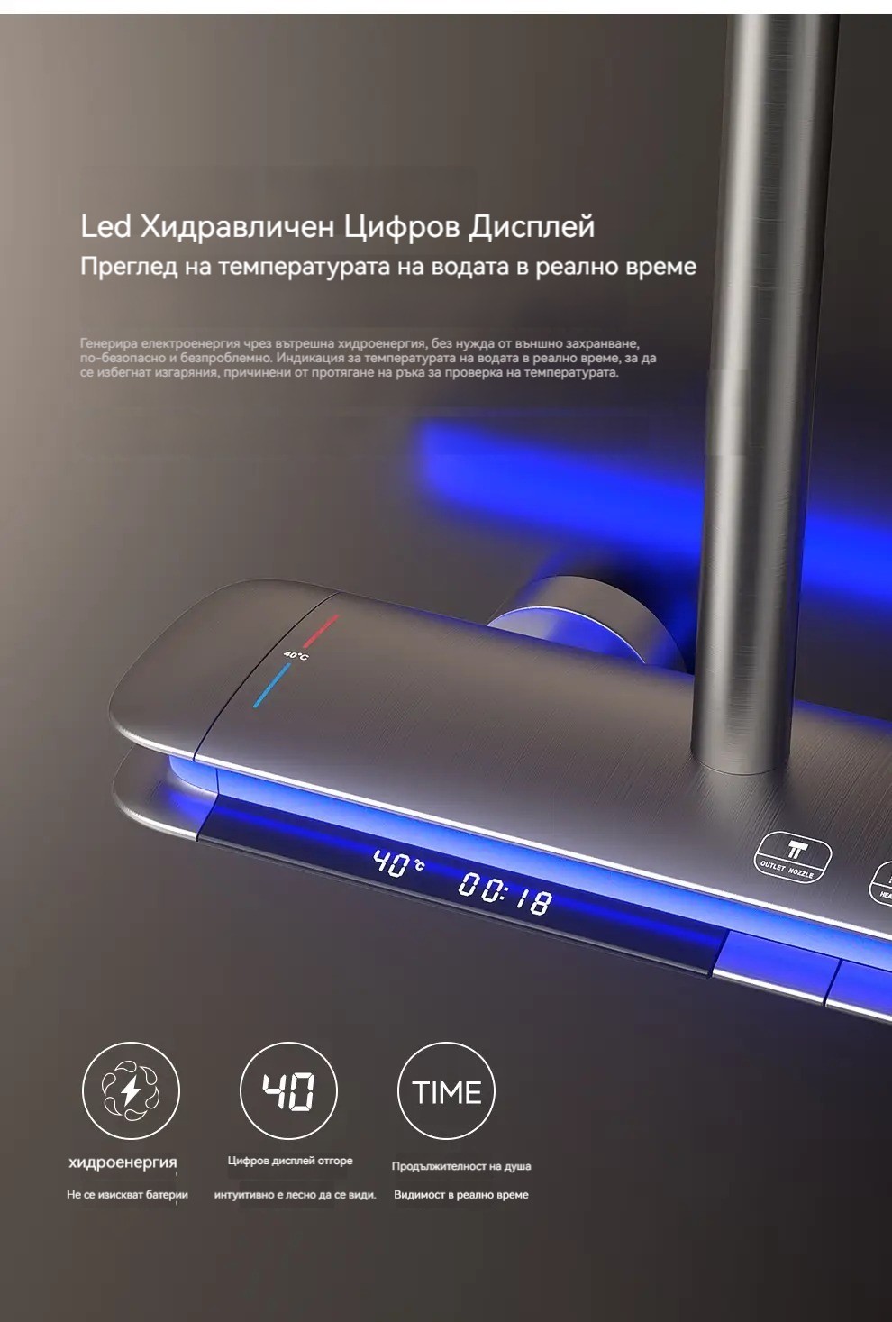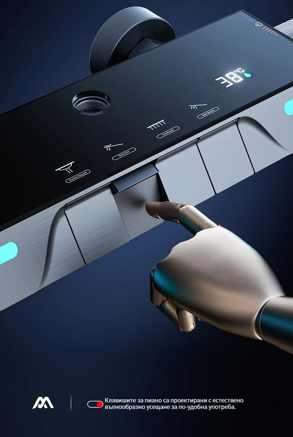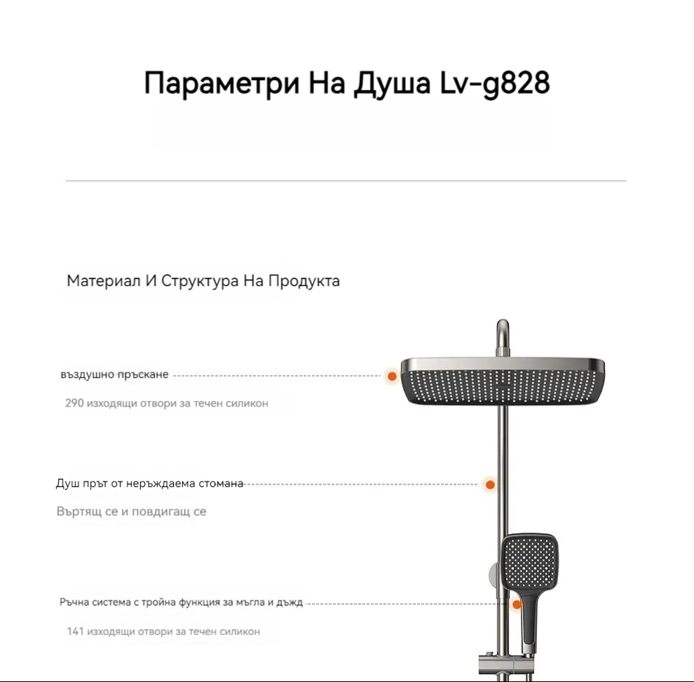 Комплект за душ, интелигентен термостат с цифров дисплей, хидравлично захранване, пиано бутони, месингов корпус, четирипозиционен контрол на налягането на водата!